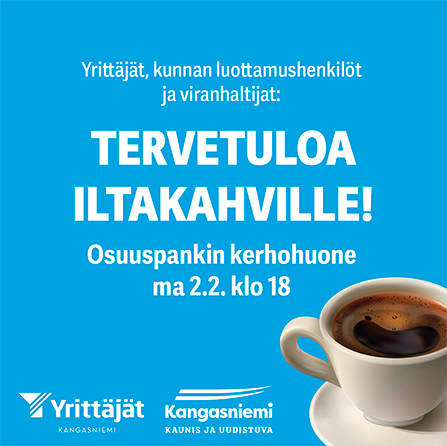Kahvit tarjoaa OP Kangasniemi ja tilaisuuden järjestämisvuorossa on Kangasniemen Yrittäjät ry.